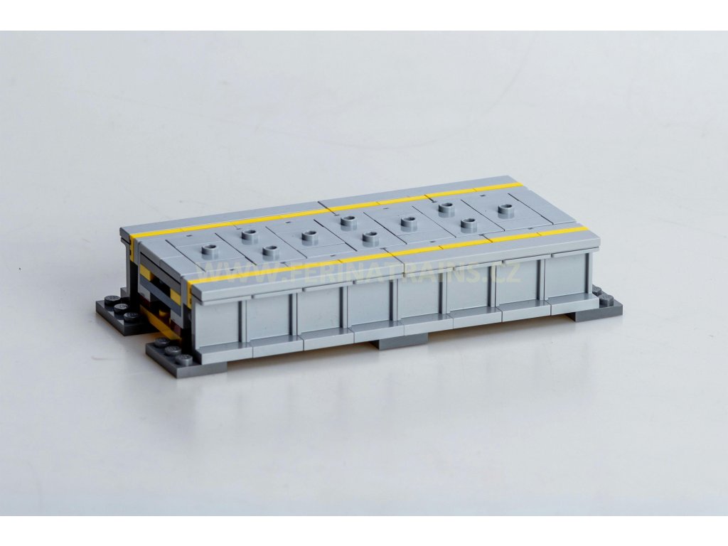 Vnitřní část univerzálního modulového nástupiště. Celý systém je navržen tak, aby se dalo spojovat libovolné množství vnitřních modulů a dva koncové moduly. Na horní část nástupiště lze přidat velké množství doplňků, jako jsou lavičky, lampy apod. Celý perón lze pak kostkami šikovně svázat a celek je pak dostatečně tuhý.