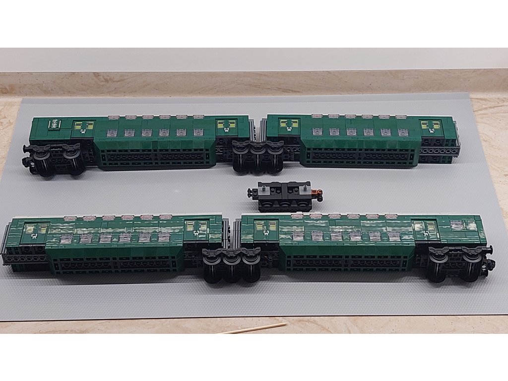 Vlaková souprava se skládá ze čtyř vzájemně propojených vozů. Tato varianta má věrný tvar konce střechy, u kterého se postupně mění sklon. Skládá se převážně z nových kostek, světle šedé kostky však již nejsou k sehnání a koncový horní šikmý dílek je vyprodaný zcela. Spodní šikmé rohové prvky jsou na tom podobně. Z toho důvodu se jedná skutečně o raritní kousek, kterého budou za celou dobu své existence k prodeji pouze jednotky kusů. Časem přidáme i hybridní variantu s černým spodkem a rovným zkosením konce střechy, které bude díky běžnějším dílům o něco levnější a dostupnější.